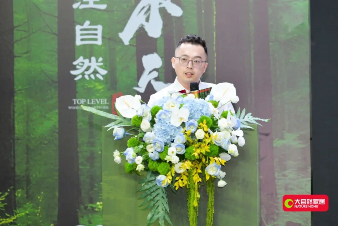 在運(yùn)營中心揭幕之后,活動移師主會場,進(jìn)入更為核心的戰(zhàn)略發(fā)布與新品揭曉環(huán)節(jié)。星系家居董事長、大自然木紋磚運(yùn)營中心總經(jīng)理王簪澤先生在致辭中,首先對到場嘉賓表達(dá)了誠摯感謝。他闡述了大自然木紋磚未來發(fā)展的“三步走”戰(zhàn)略,并將始終以長期主義為指引,以產(chǎn)品力與伙伴關(guān)系為核心依托。其發(fā)言既體現(xiàn)了對產(chǎn)品品質(zhì)的堅(jiān)守,也展現(xiàn)了品牌深耕細(xì)分領(lǐng)域的戰(zhàn)略定力。